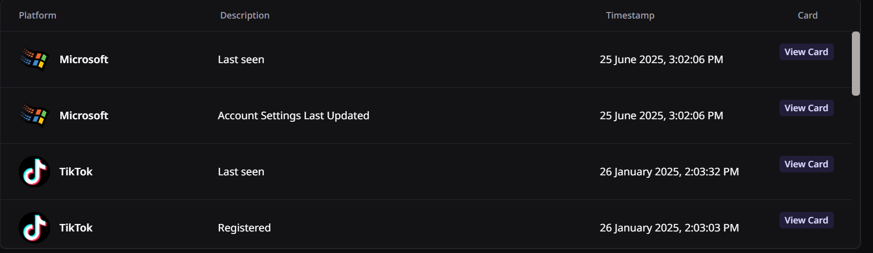 For example. you can review data including when the user was last seen on different platforms: