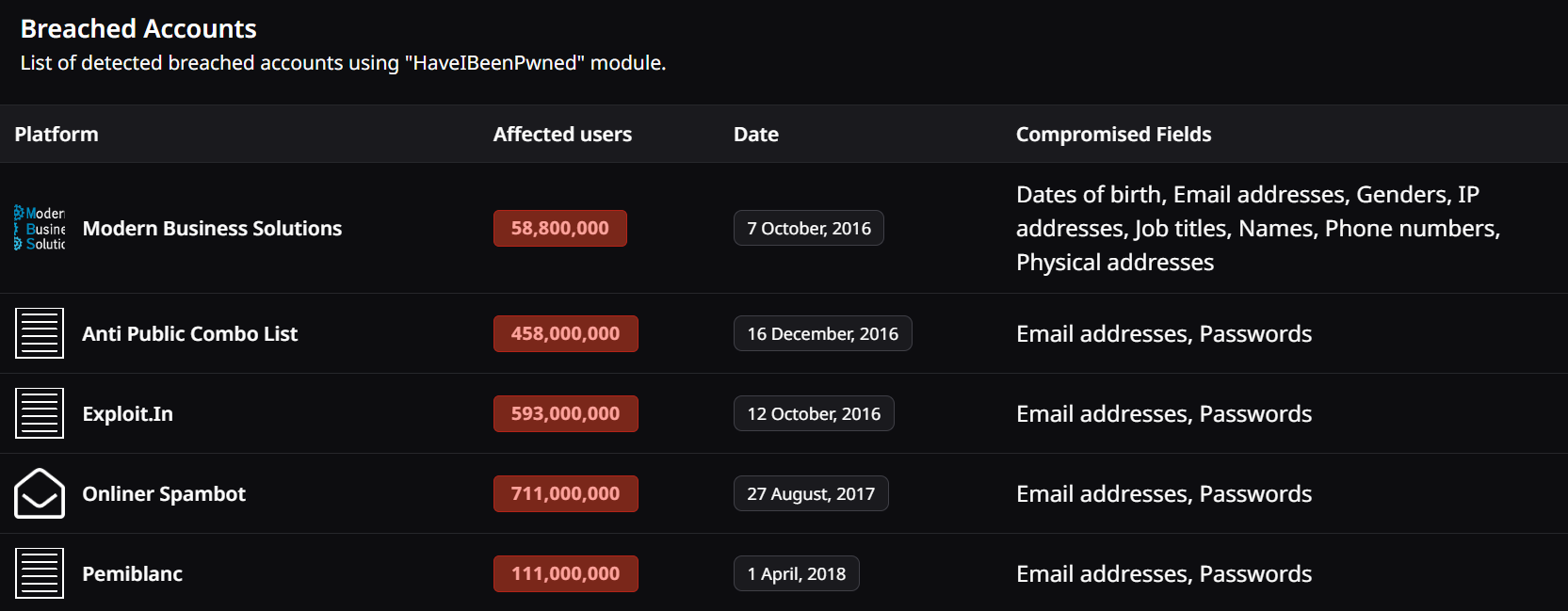 Breached accounts: