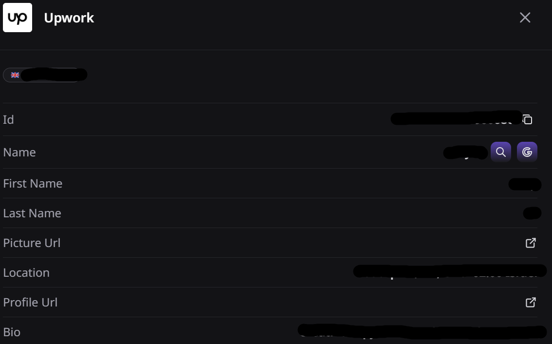 And click individual account cards to reveal varying information about the user including potential first and last names, profile images, bio and location data: